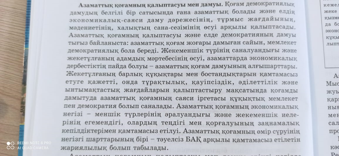 5. Азаматтық қоғамның өмір сүруінің негізгі шарттарының бірі-