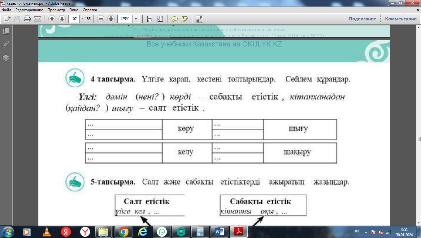 Салт және сабақты етістіктерді ажыратып жазыңдар. |