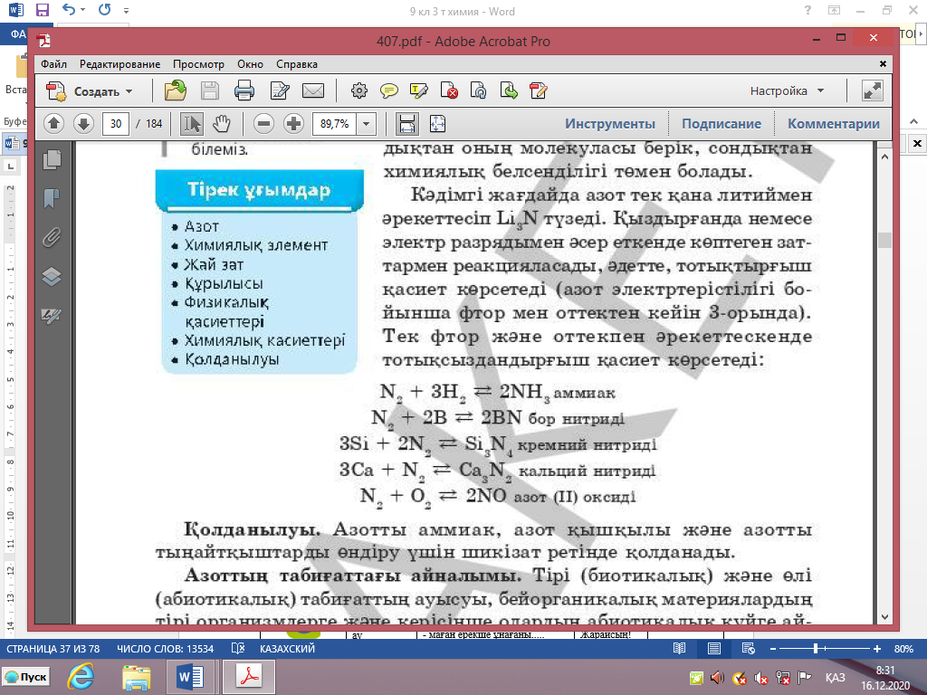 2.Тапсырма Азоттың химиялық қасиетін анықтайды