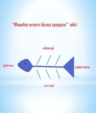 ЕББҚ оқушы (есту, көру, ойлау қабілеті) тапсырманы саралау арқылы орындайды. 3-тапсырма. «Фишбоун немесе балық қаңқасы» әдісі Балалар осы шығармада болып жатқан оқиғаларды балық қаңқасының басына оқиғаның тақырыбын, құйрығына идеясын, қабырғасының үстіңгі бөлігіне себептерін, астыңғы бөлігіне салдары, дәлелдерін жазасыздар. |