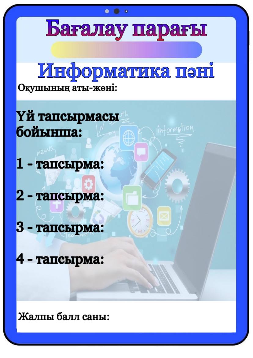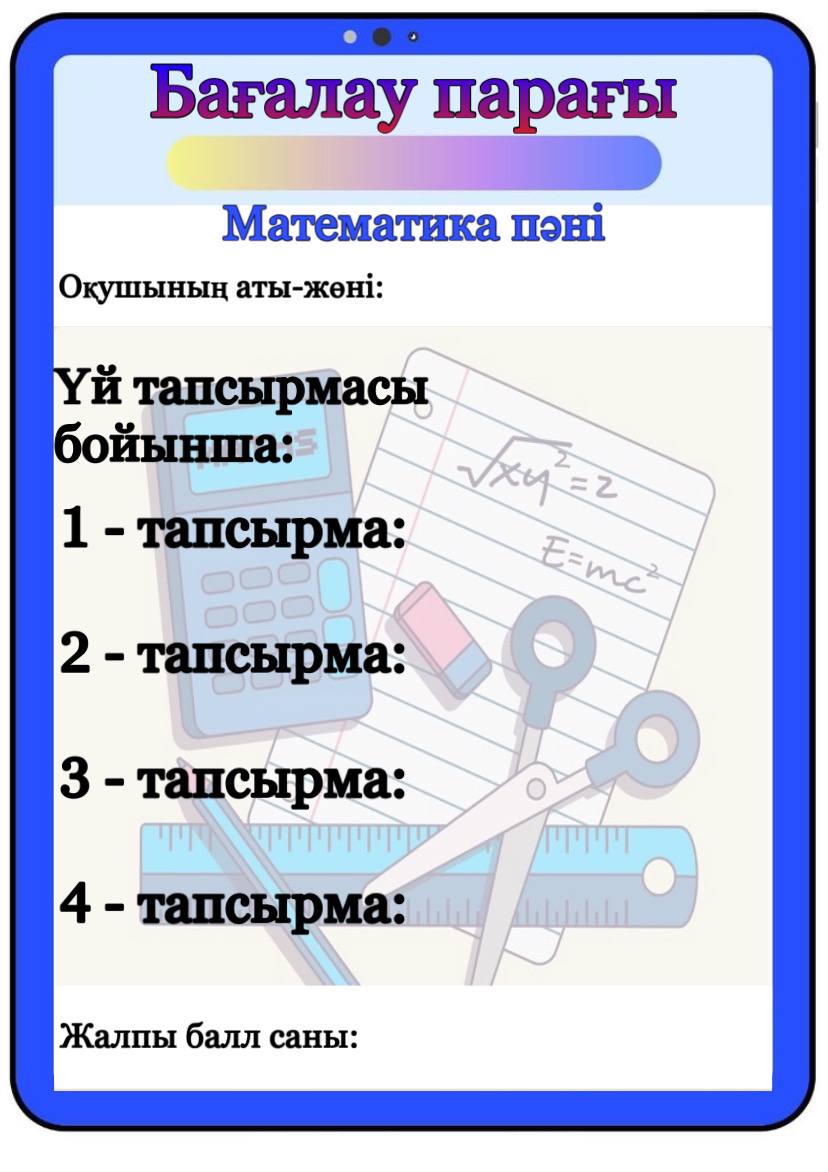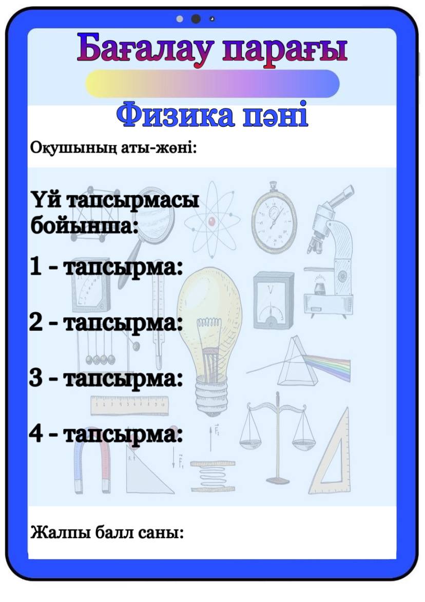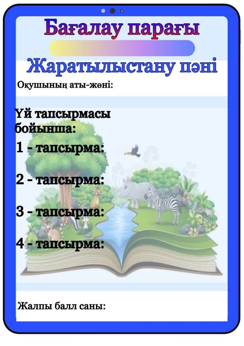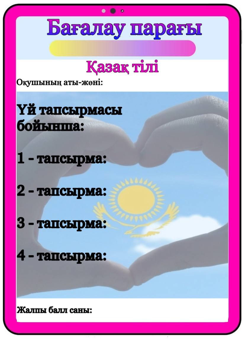 Бағалау парағы барлық пәнге арналған