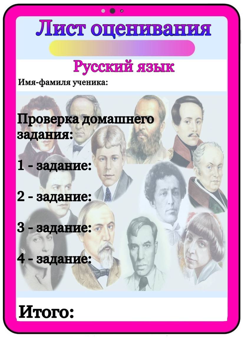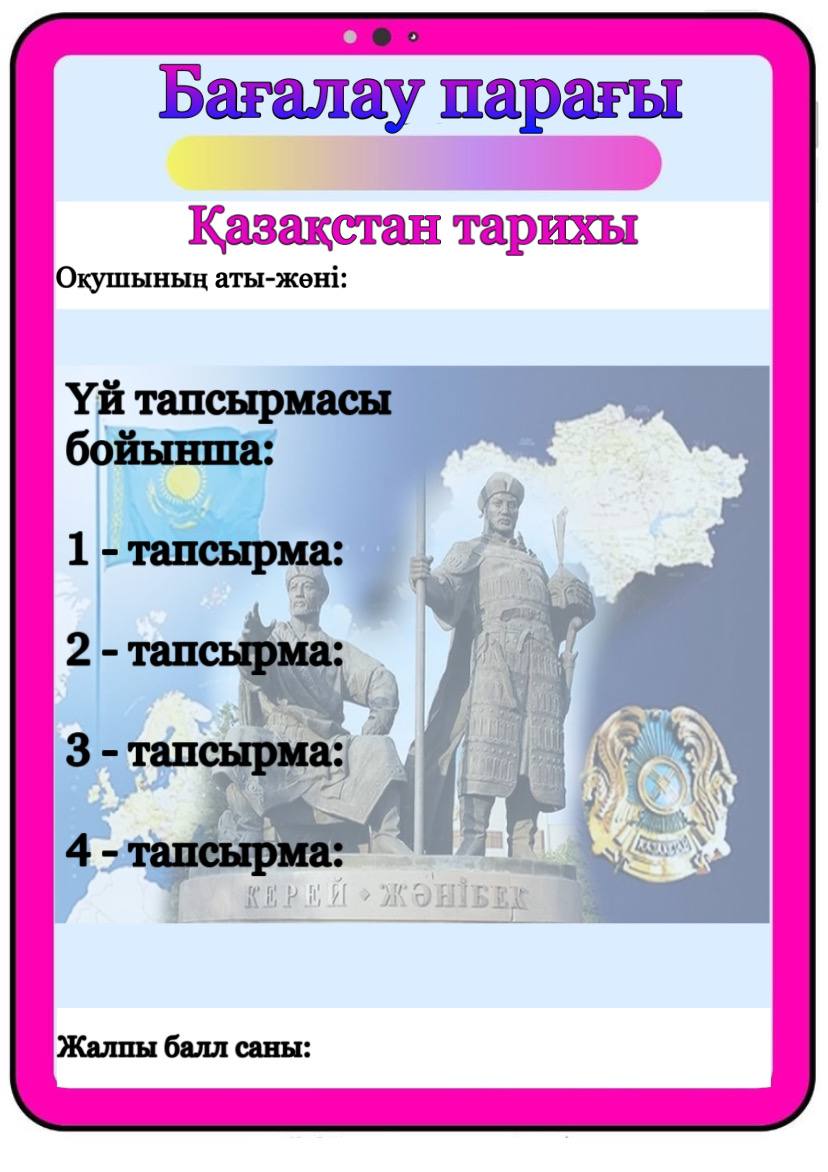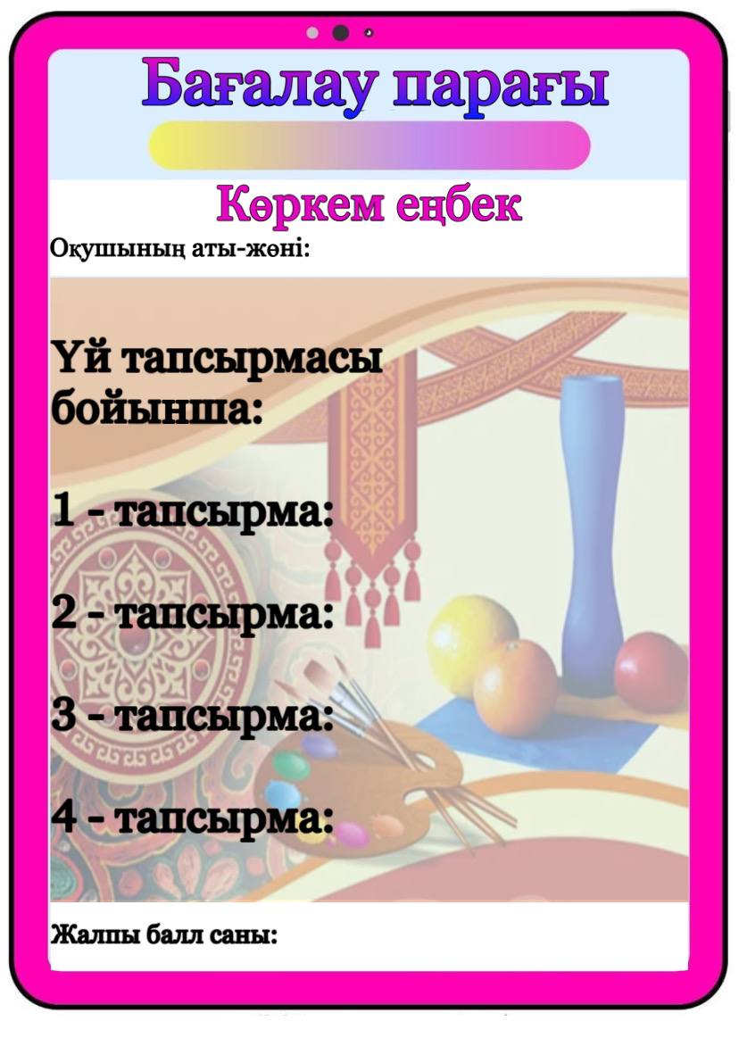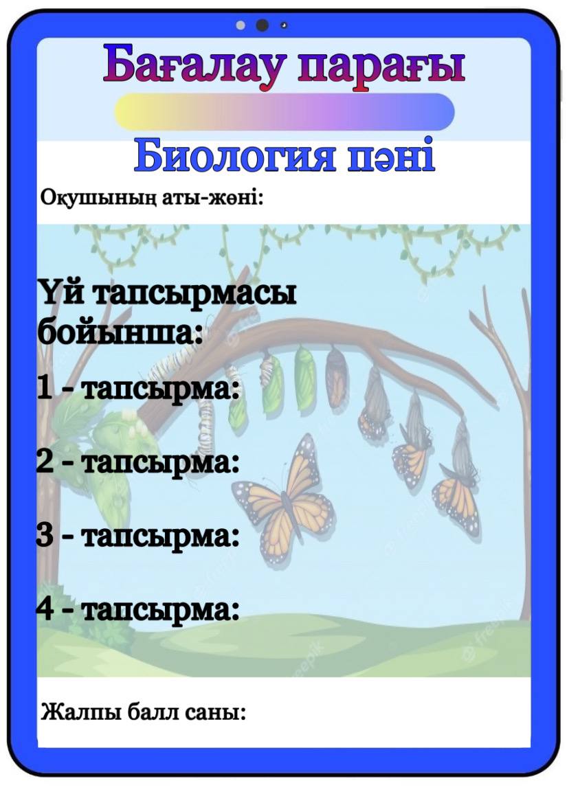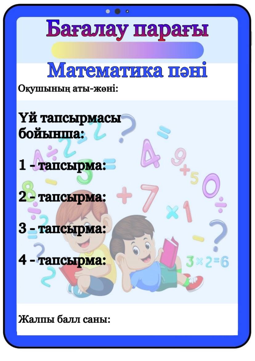 Бағалау парағы барлық пәнге арналған