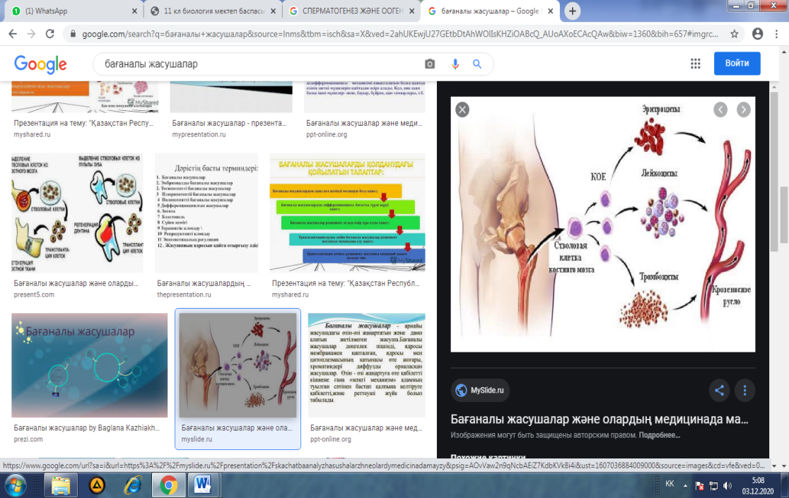 Дескриптор: Жалпы - 3 балл Бағаналы жасушалардың медицинадағы қажеттілігі |