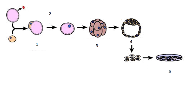 Эмбриондық бағаналык жасушалар адамның 4-5 күндік бластоцист фазасындағы эмбрионынан алынады. Бластоцист кезеңі дегеніміз зигота бірнеше рет бөлініп, 2, 4, 8, 16 жасушаға айналады. 4 кейде 6 күннен соң жатырға имплантацияланғанға дейінгі кезең. Эмбриондар, көбінесе ЭКО жасатқан кезде қалған эмбриондардан алынады.