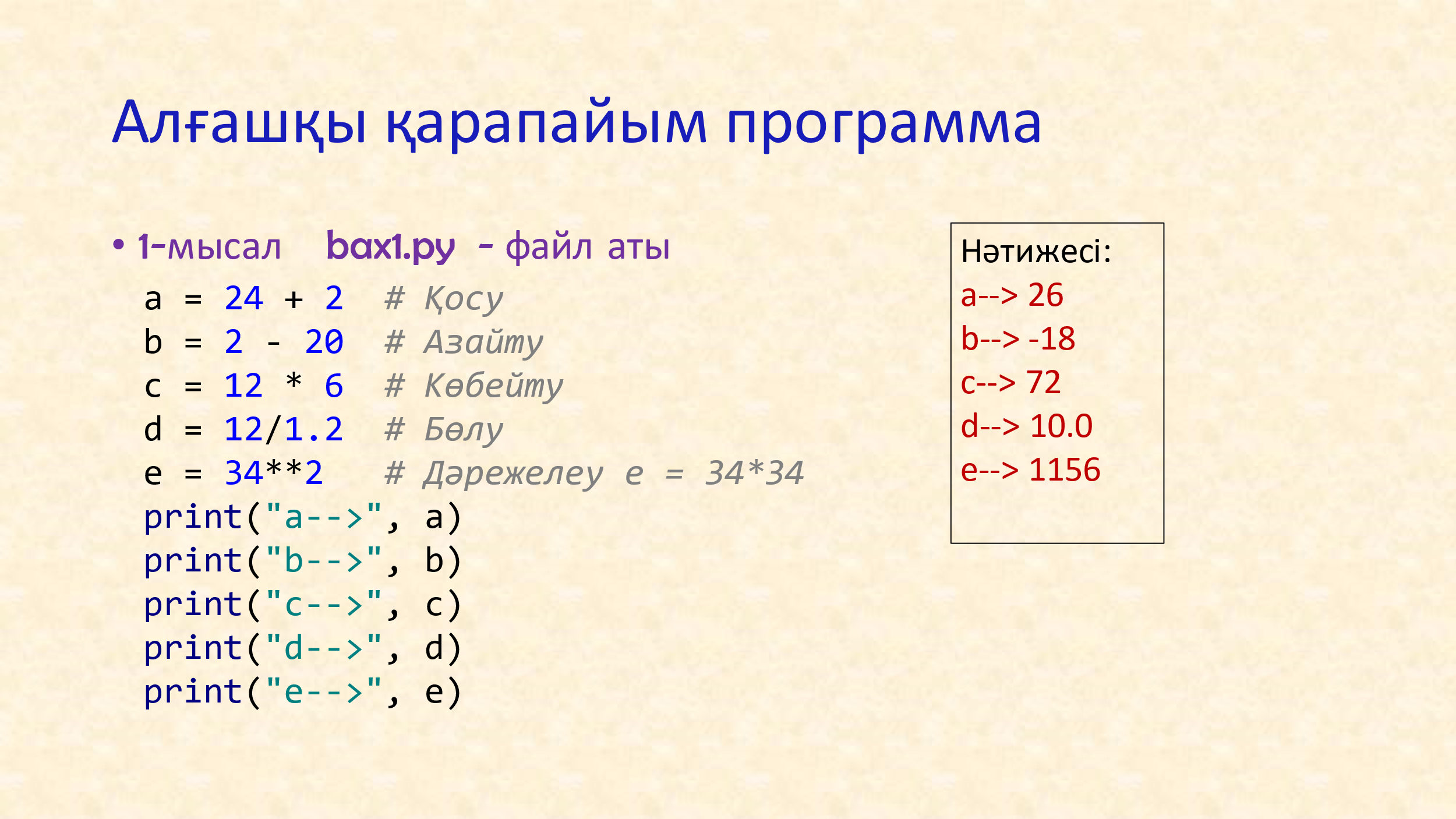 Бөлім: §4–§6. Python тіліндегі алғашқы қадамдар — бет: 35–52 -