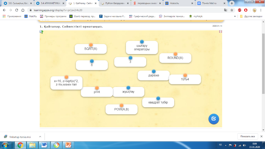 ете алуы тиіс. Тапсырманы орындауға 4 минут уақыт