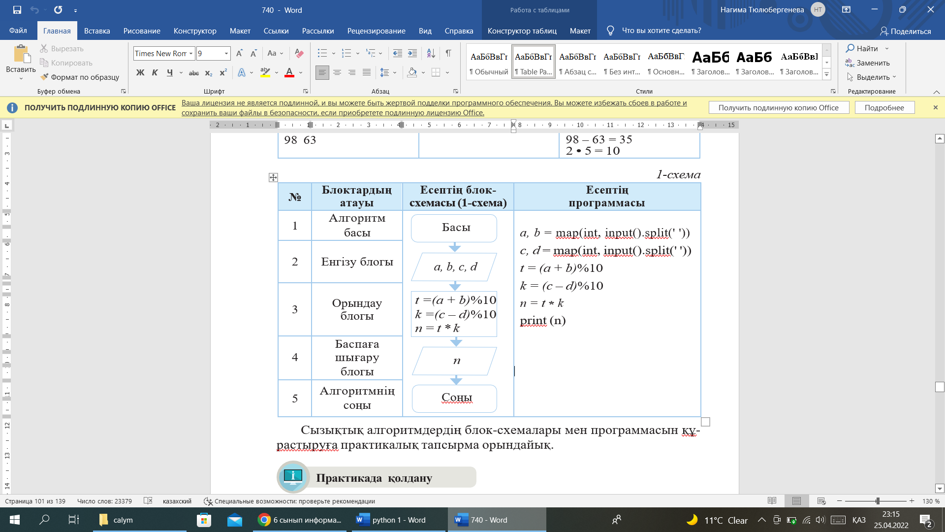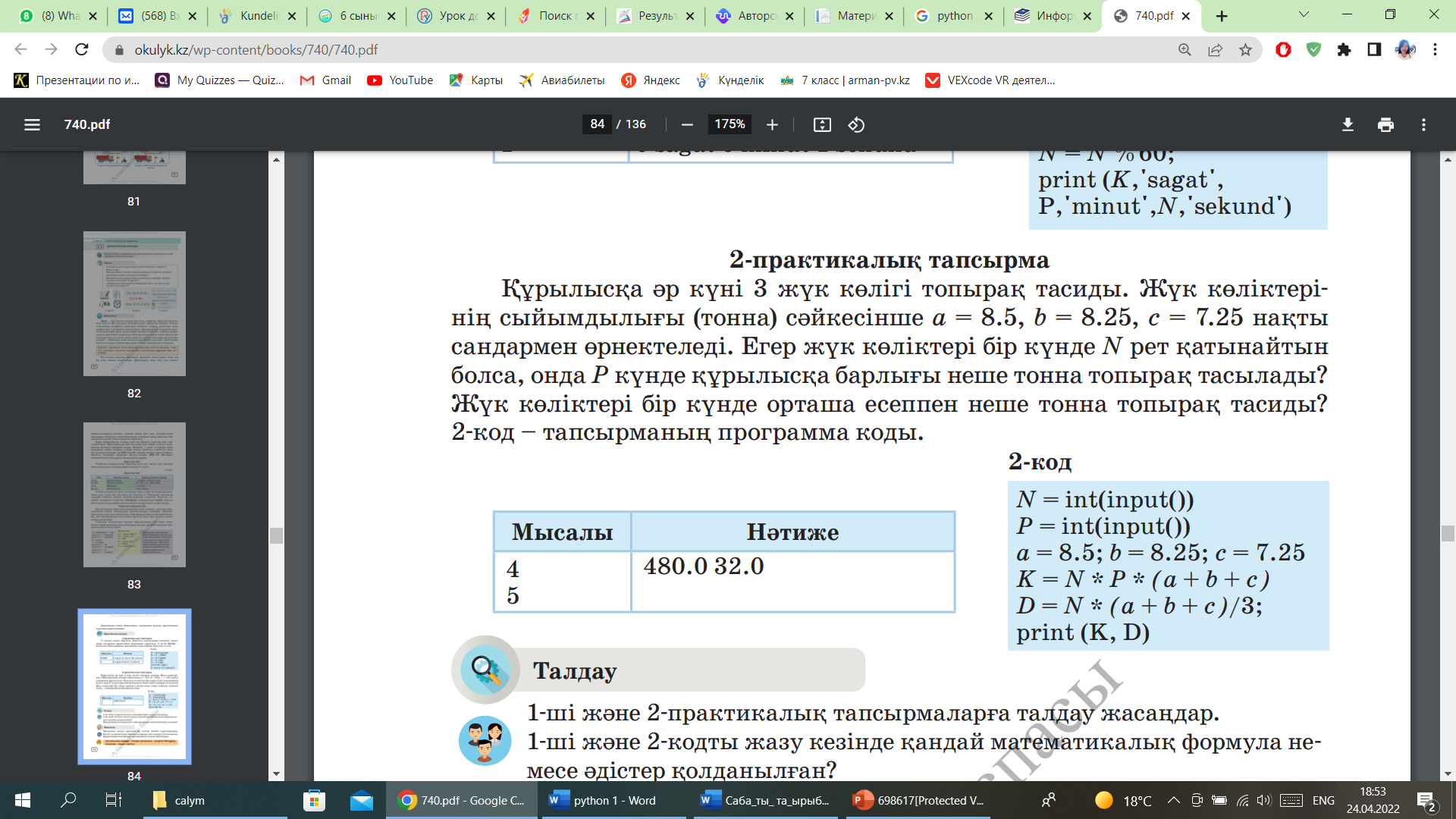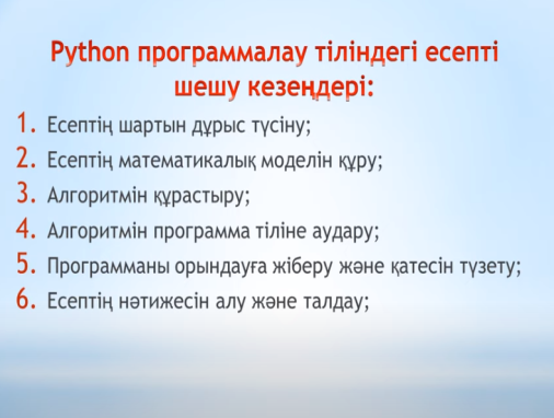 Қажетті амалдарды талдайды және Python-да есепті шешу үшін қолдана алады |