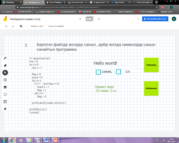 Мәтіндік файлдан оқу және жазу кодын жаза алады |