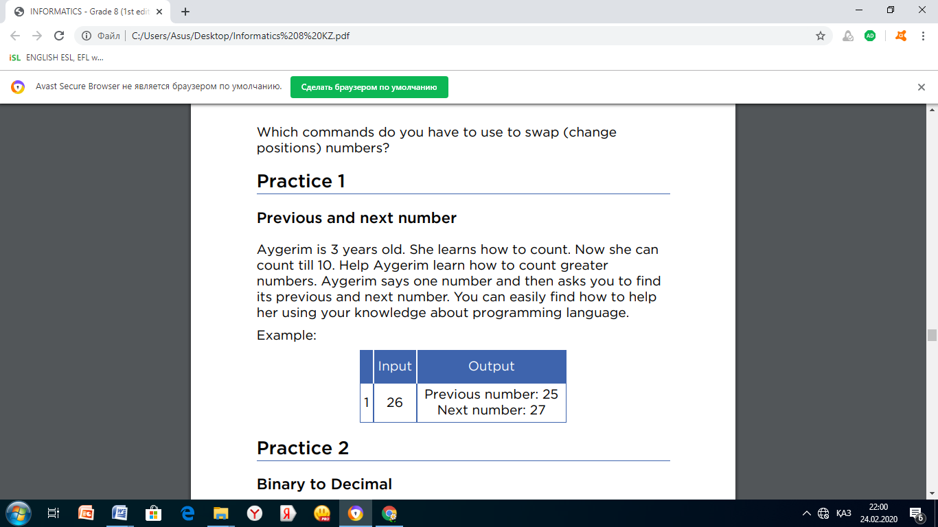 Әбдіқадырова А.С. Жаңартылған білім мазмұны жағдайында информатика пәнінен сабақ беру ерекшеліктері. – НЗМ, 2020. — 98 б.