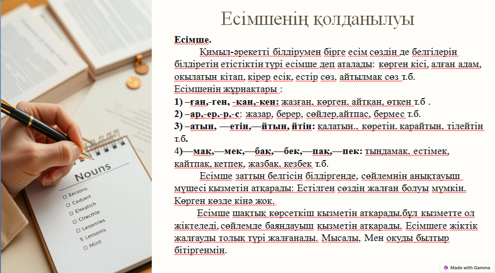 Топтық жұмыс № 4-тапсырма: Есімшенің жұрнақтарын қойып, сөйлемді толықтыр