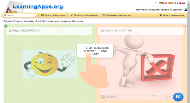 Жеке жұмыс №1- тапсырма: «Дұрыс-бұрыс» ойыны арқылы мәтінді іріктеу Мәтін мазмұнына сәйкес келетін жауапты белгіле. |