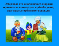 Бейнеролик «Ата–ананың тәрбиесі – бала мінезінің іргетасы»
