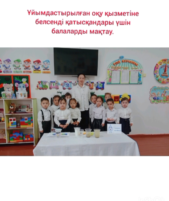 Әңгімелесу: Балалармен балабақша қуаныш пен сүйіспеншілік үйі туралы сөйлесіп, әңгімелеседі. Балабақшада балалар көп жақсы нәрселерге; бір – бірін сыйлауға, көмектесуге тату ойнауға үйренеді. Балабақша достықтың, ұйымшылдықтың отаны екенін түсіндіру.