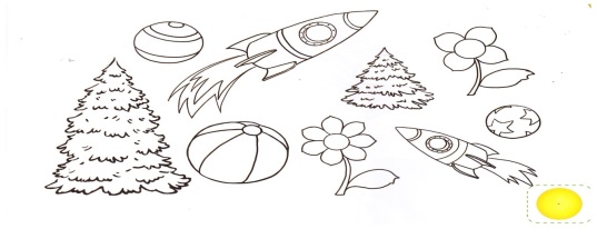 Жауабы:қоңырау гүл Тапсырма № 3. Үлкен шыршаны, күлтелері көп гүлді, кішкентай зымыранды, орта көлемдегі допты боя.