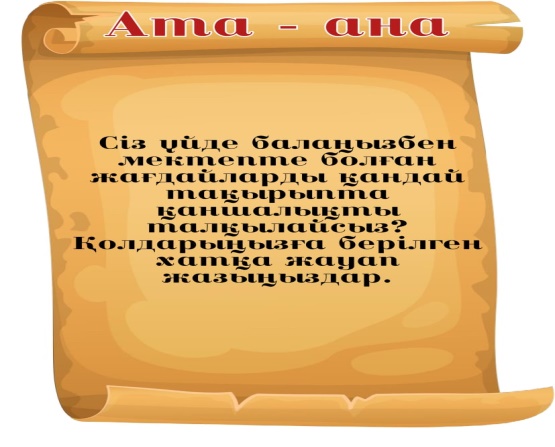Баланың бас ұстазы ата -ана! Қмж