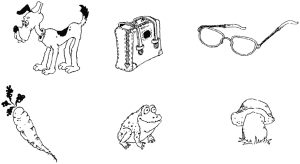 Балаға түрлі заттар бейнеленген суреттер ұсынылады (2-сурет). Баланың бұл затты білетіндігін тексеріңіз. Содан кейін сіз кез-келген сөзді айтыңыз және баладан сол дыбыстан басталатын затты көрсетуін өтініңіз. Мысалы, сіз «сүт» сөзін айтасыз, бала «сиыр» суретін көрсетеді, өйткені екі сөз де «с» әрпінен басталады.