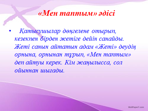 Әр топ мүшелері ұяшықтарды таңдайды, сұрақ оқылады, сол сұрақтарға лезде жауап беру керек.