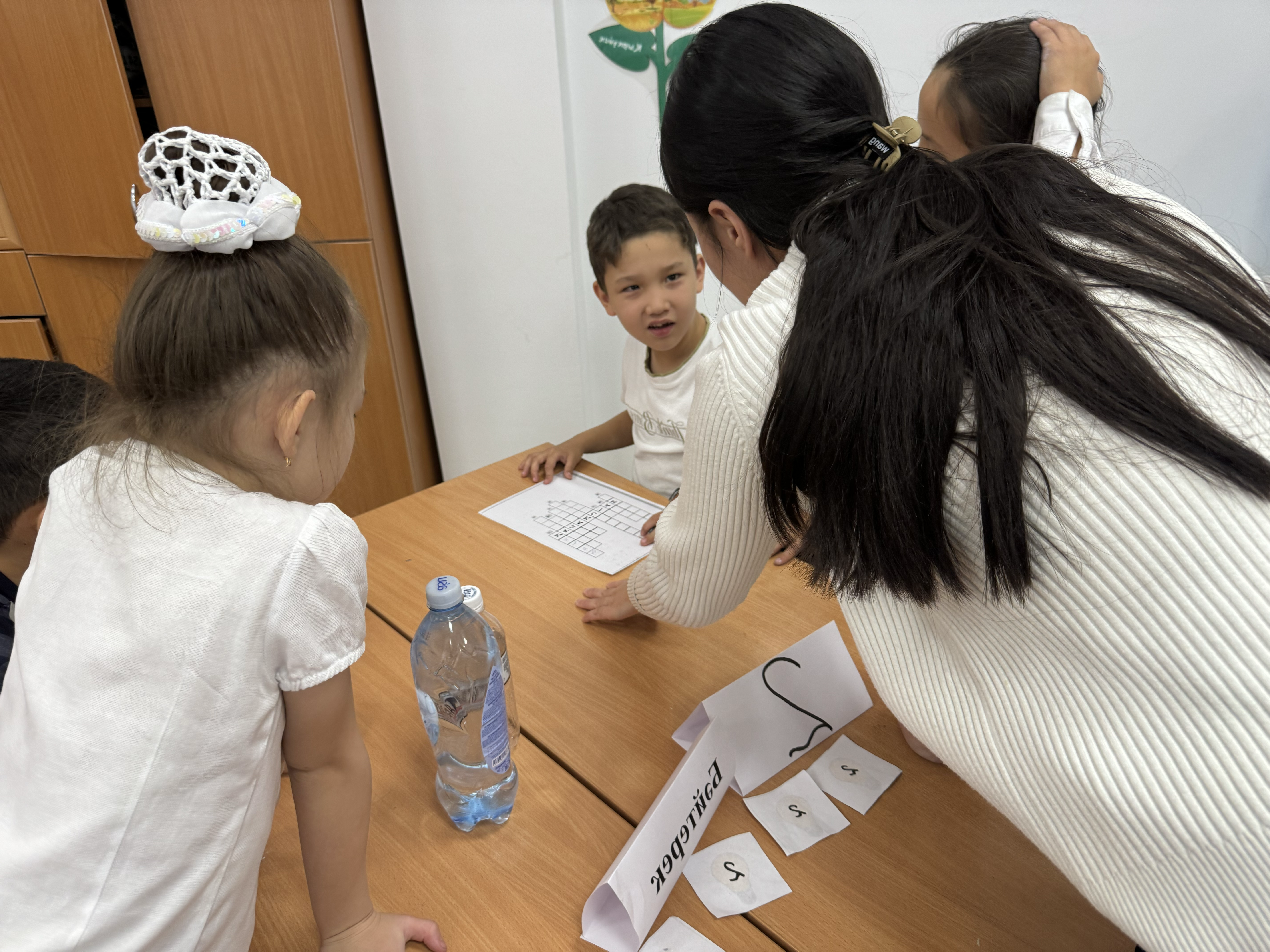 Алдыңғы өткен тақырыпқа байланысты есептер ілінеді. (фигуралармен беріледі ) Әр жұп өздеріне анықтауға берілген фигураларды «жинап әкеледі». Мысалы тапсырмалар: Фигуралардың ішіндегі есепті белгілі бір уақыт аралығында шешіп, орындау. Қазақ тілден Мамандықтар бөлімі: «Тұрақты сөз тіркестері» тақырыбында сабақ жүргіздім. Сабақтың басында «Бір қадам алға» әдісін қолдандым. Яғни өткен сабаққа байланысты сұрақтар қойып, егер жауап дұрыс болса, бір қадам арға жылжиды, қате болса, бір қадам артқа шегінеді. Оқушыларға тұрақты сөз тіркестері не екенін, қандай сұраққа жауап беретін туралы ережесін түсіндірдім. Кесте бойынша тұрақты сөз тіркестерінің мағынасын түсіндірдім. Оқушылар суретке қарап отырып, әңгіме құрады. Сабақтың ортасында сергіту сәтін орындадық. Сергіту сәті: «Кел билейік» Сабақты қорытындылау барысында «білім ағашын» қолдандым. Математикадан, әдебиеттік оқудан, қазақ тілден бірінші «Бөлім бойынша жиынтық» бағалауды мұғаліммен бірге алдық. Жиынтық бағалауды тексеру барысында дескриптор бойынша бағалауды үйрендім.