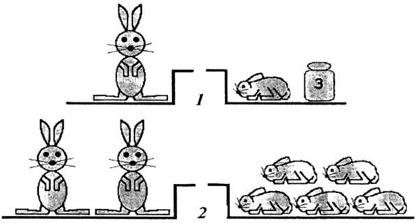 Аулада жүрген бұзаулар мен тауықтардың аяқтарының саны – он. Аулада неше тауық, неше бұзау болуы мүмкін? (2 тауық, 2 бұзау.