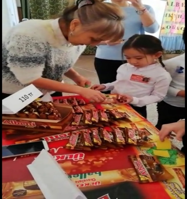 - Албени өнімдерінің шығу тарихына қысқаша тоқталып, оқушылардың жас ерекшелігі ескеріліп, «Менің таңдауым - Албени» атты ақпараттық көмекші құралды ұсындым. Мектеп медбикесі тамақтанудың адам ағзасына әсері,тәттінің бала денсаулығына зияны мен пайдасы туралы кеңестермен бөлісті. Және мектеп директоры Смагулова Ә.Д. онкүндік жобаның салтанатты ашылу лентасын қиды.