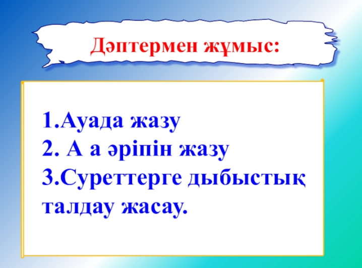 Ауада жазу.Әріптерді оңға қарай біркелкі көлбеу жазу |