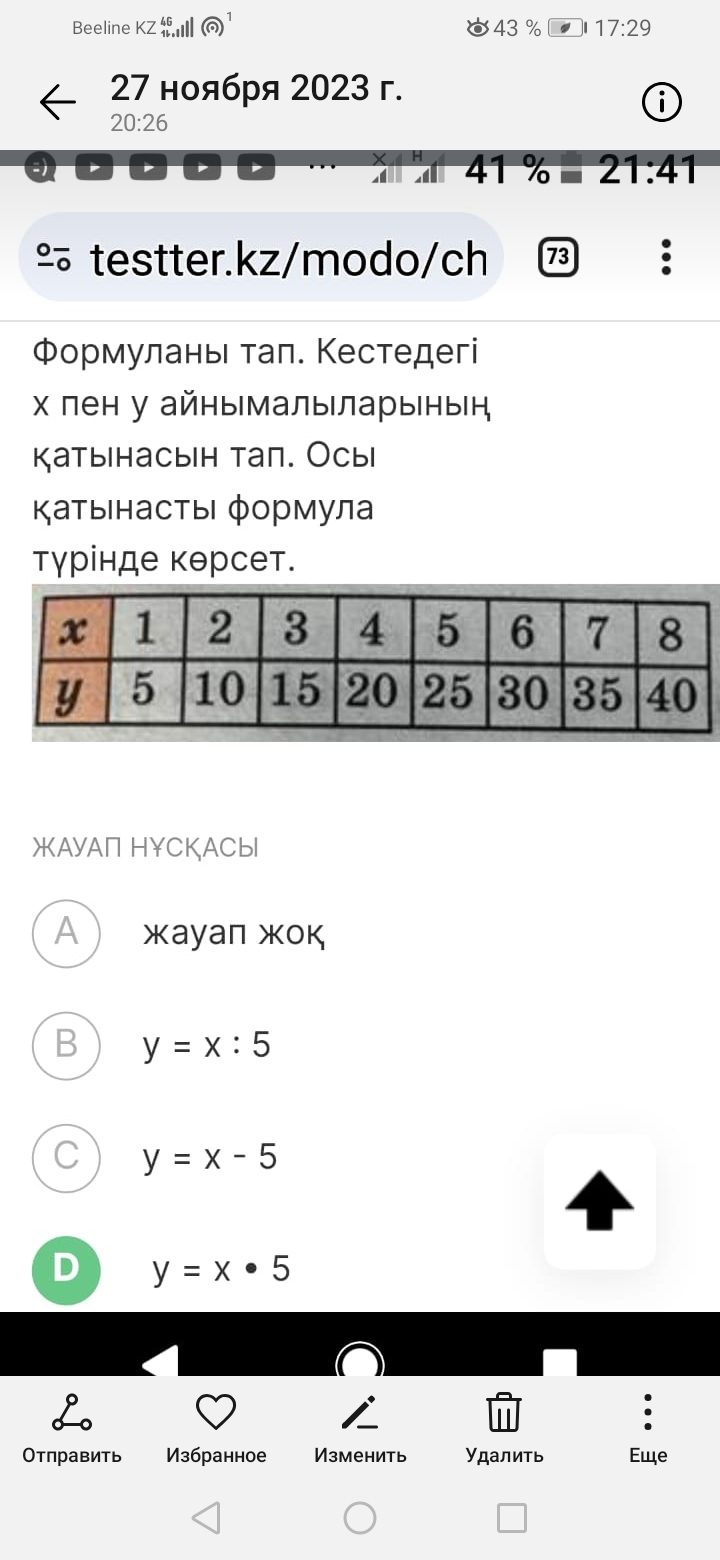 Формуланы тап. Кестедегі х пен у айнымалыларының қатынасын тап. Осы қатынасты формула түрінде көрсет.