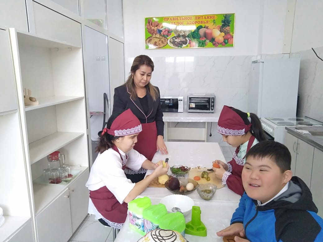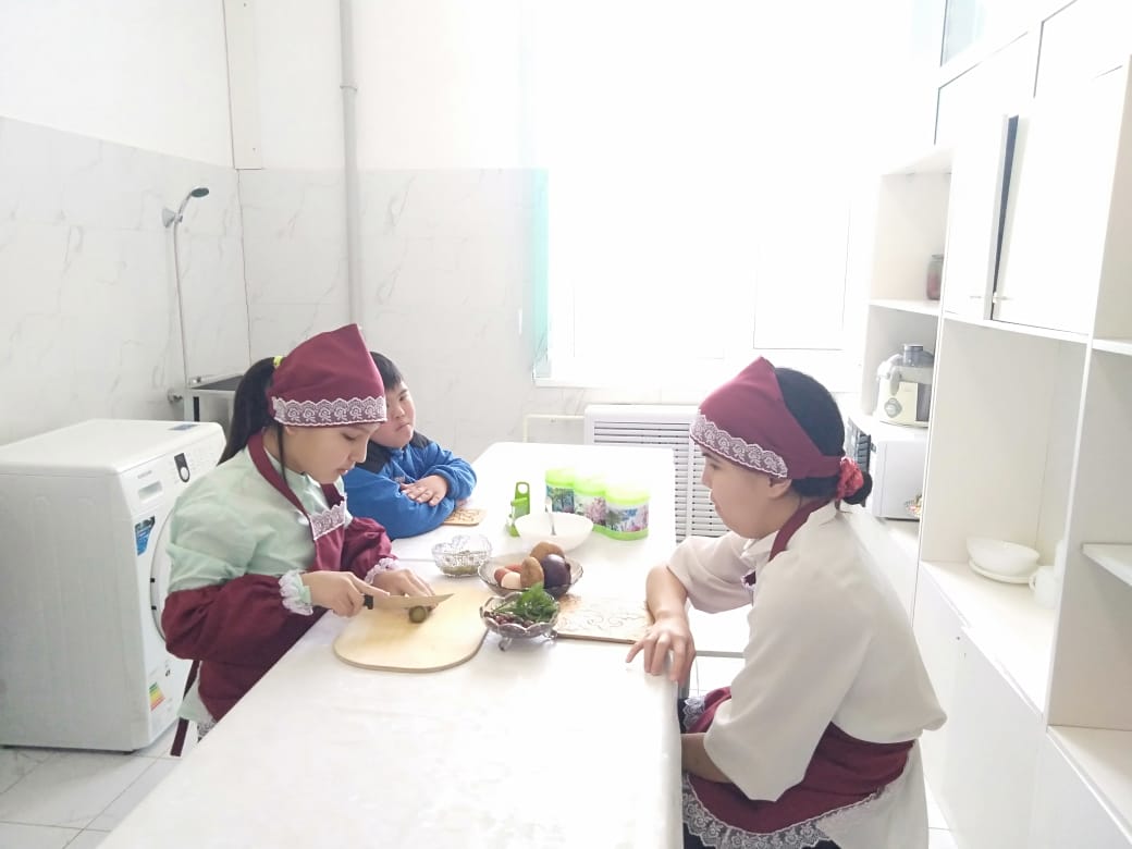 «Тамақтану» бөлімі оқушылар үшін өте қызықты сабақтардың бірі болып өтті.Асханалық жұмыстар оқушылардың сабаққа деген қызығушылығын оятты.Мысалы 7 «Ә» сыныптар арасында салаттар жасадық. Оқушылар салаттардың жасалу жолдарымен таныса отырып өздері салат жасады.
