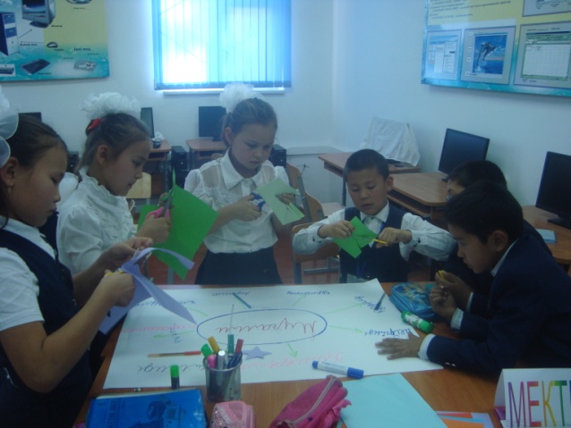 Сыныпта ынтымақтастық атмосферасын қаыптастыру. Сергіту сәті Топқа бөлу «Жүректен- жүрекке » атты психологиялық дайындықтан бастау. Бұл бөлімде балалар бір - біріне жақсы сөз, жылы тілектерін арнады.Топты мақал- мәтелдер арқылы бөліп отырғызу |