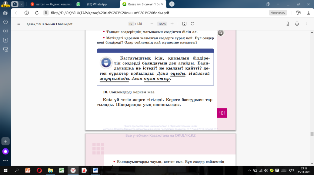 Оқулық 9-жаттығу 101-бет таратпа қаламсап |