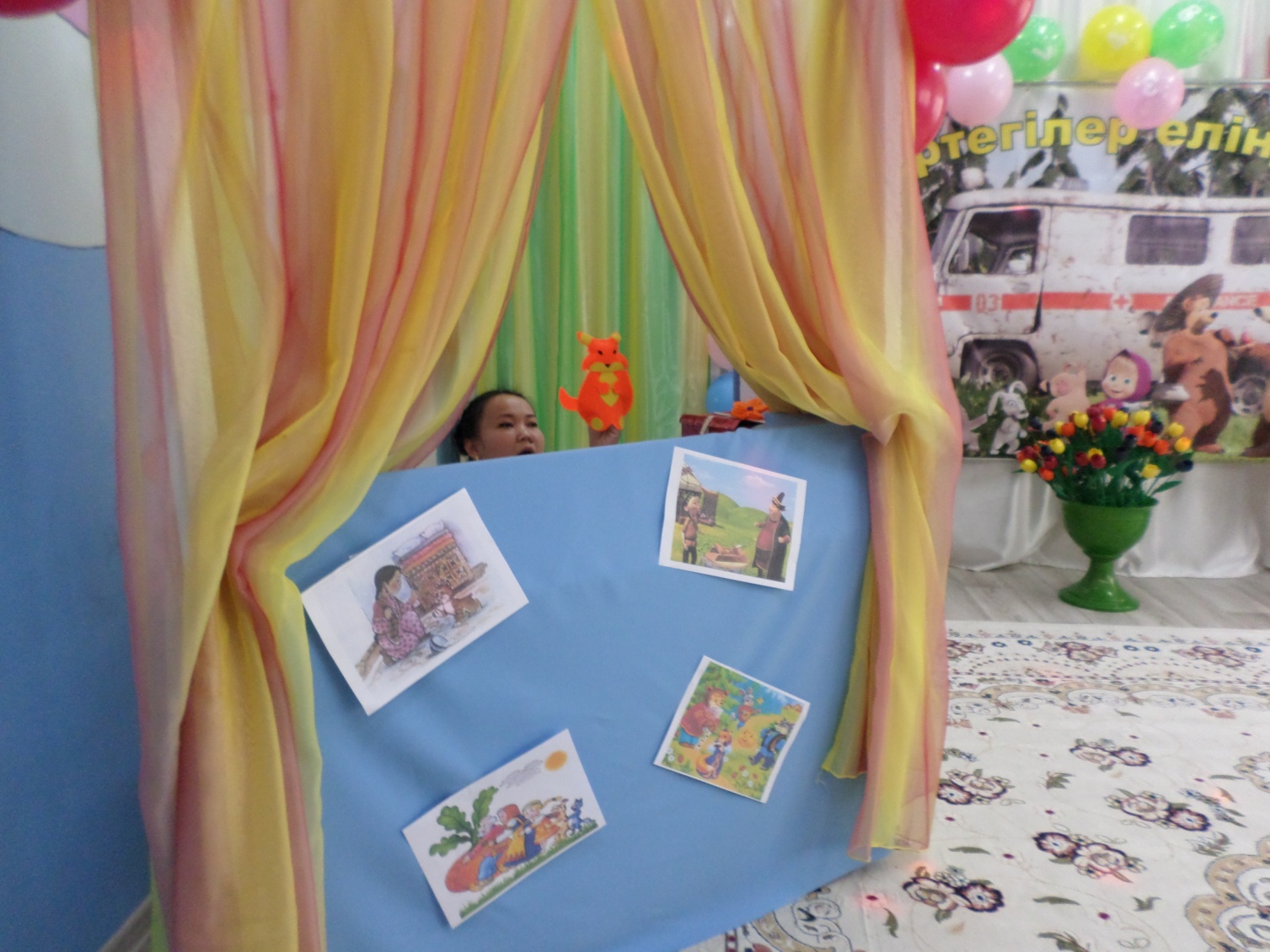 Мақсаты:Балаларға ертегілер туралы түсінік беру . Ертегі кейіпкерлерін ойнай отырып , баланың қиялы мен қабілетін жетілдіру . Балалардың сөздік қорын, байланыстырып сөйлеуге дағдыландыру .Өзара сыйласып , достық қарым-қатынаста болуға, біреуге қызғанып қарамауға, бірін-бірі құрметтеп, үлгі тұтуға тәрбиелеу.