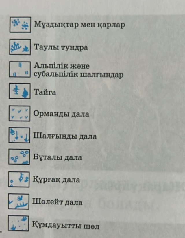 9.3.4.1 Қазақстанның табиғат зоналары мен биіктік белдеулеріне салыстырмалы талдау жасайды7