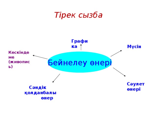 Мәдениеттің көркемдік, адамгершілік кеңістігінде өзін-өзі көрсетуге және бағдарлауға мүмкіндік беретін дүниенің эмоционалдық-құндылық, эстетикалық дамуының бір түрі ретінде оқушылардың көрнекі-кеңістіктік ойлауын дамыту.