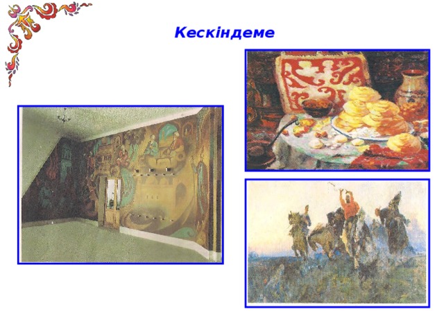 Кескіндеме бейнелеу өнерінің негізгі және ең көп тараған түрі. Кескіндеме дегеніміз әртүрлі бояулар мен орындалған көркем шығармалар.