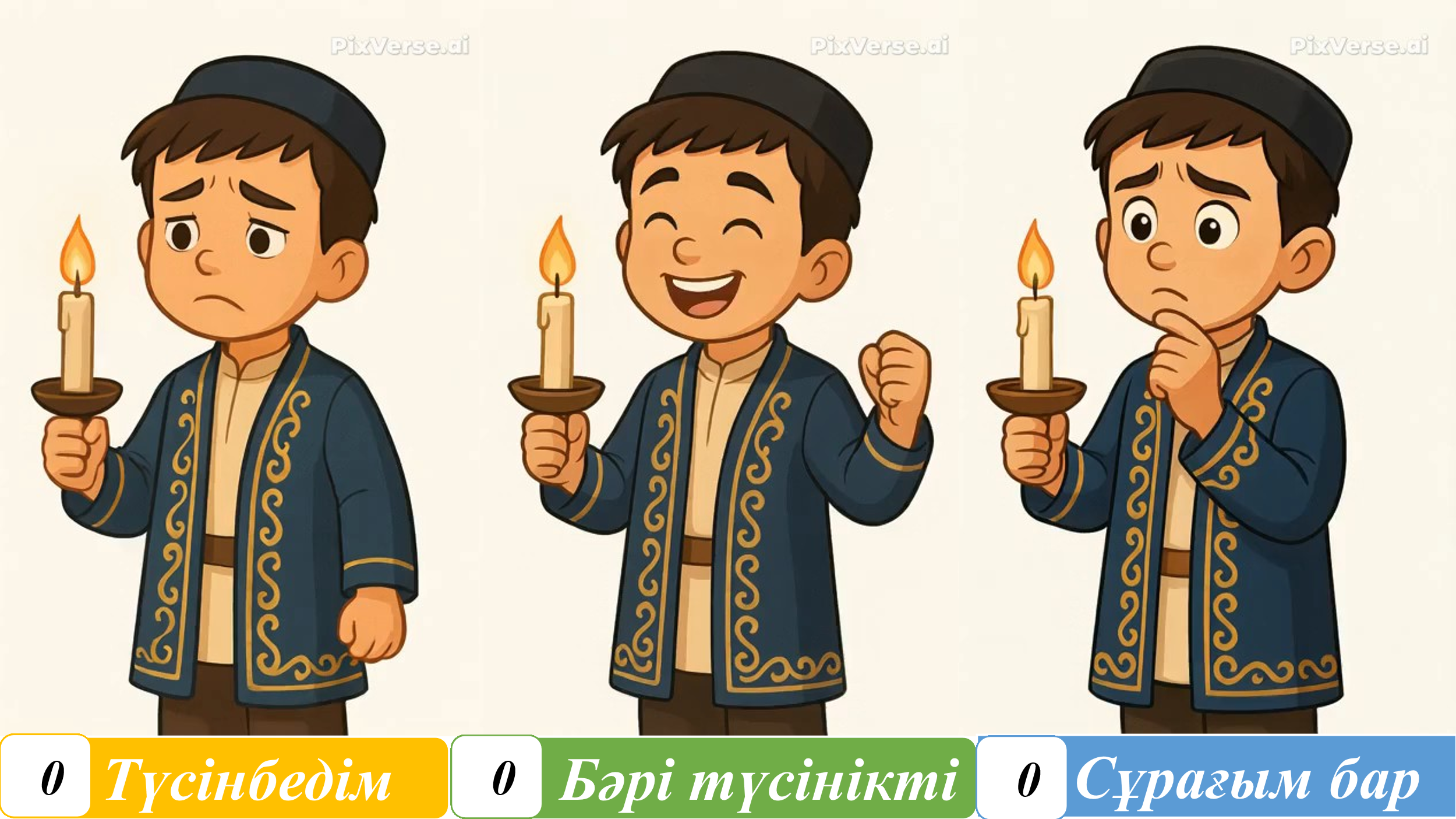 Берілген тапсырмалар дың барлығына «Адалдық мөрі» әдісі арқылы оқушылар өз-өздерін бағалайды. Дескриптор: -алдыңғы білім бойынша сұрақтарға жауап береді – 1б - соңында шыққан сурет бойынша жаңа тақырыпты болжайды – 1б |
