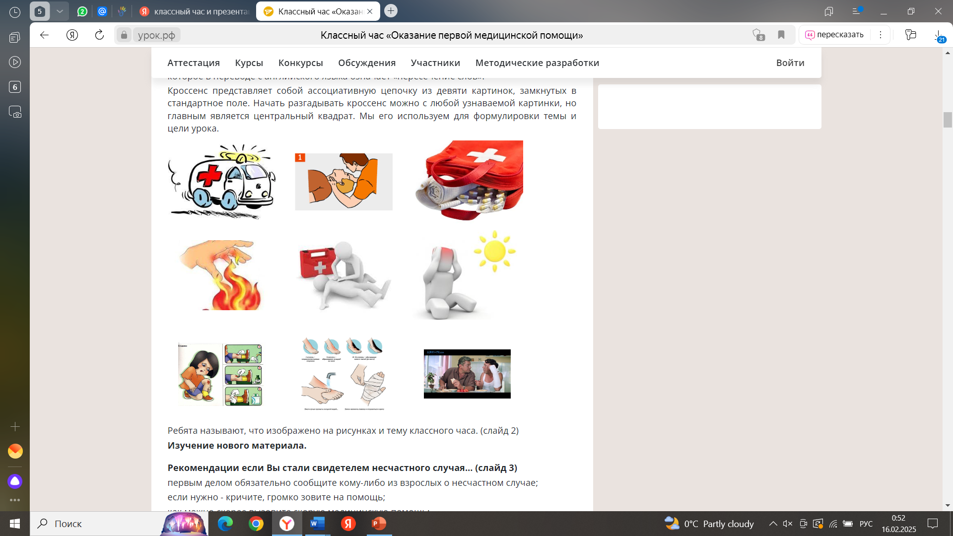 «Безопасное общество/" Оказание при ЧС первой медицинской помощи (ПМП) при переломах и кровотечениях» . «Экстренные случаи во время путешествий ( пожар, землетрясение, наводнение)» |