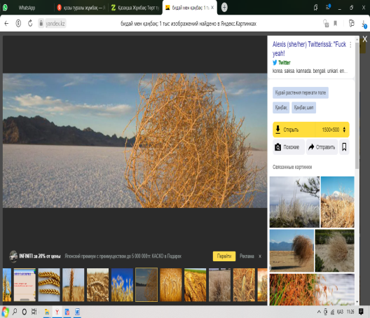 Көңіл күйлерін білдіреді суреттер арқылы үш топқа бірігеді Жұмбақты шешіп, жаңа тақырыпты ашады. -Бидай мен қаңбақтың ұқсастығы мен айырмашылығын айтады . |