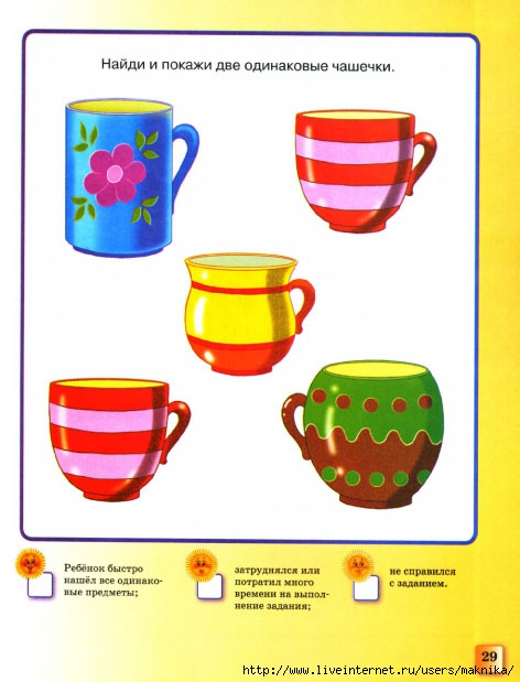 Тапсырма: бірдей кружканы тауып көрсет.