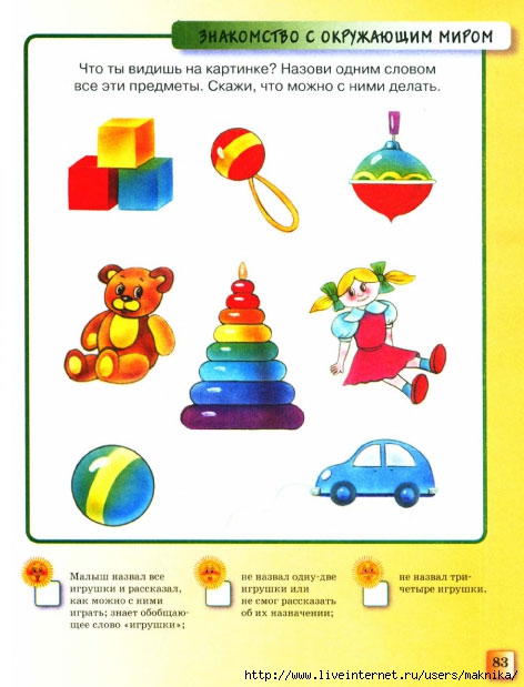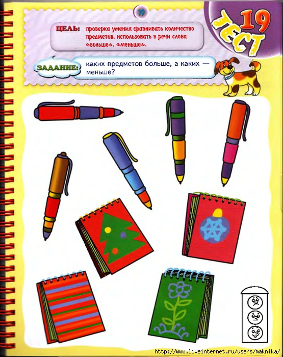 Беріліп отырған әдістемелік құрал мектеп жасына дейінгі балалардың танымдық процестерін, қоршаған ортамен қатынасын анықтауға, математикалық білімдерін тексеруге аналған. Көмекші әдістемелік құралды балабақша психологтары қолдануға болады.