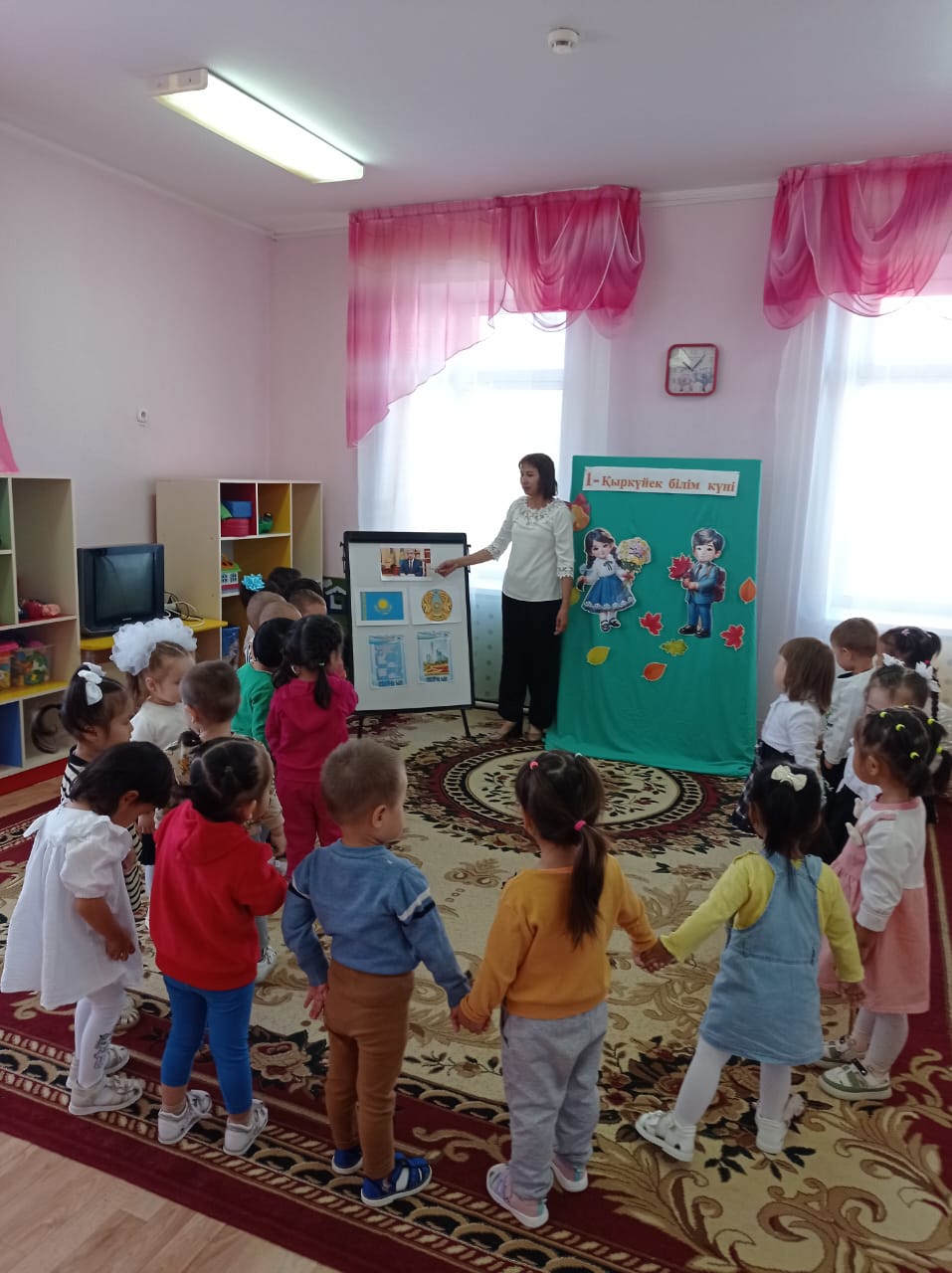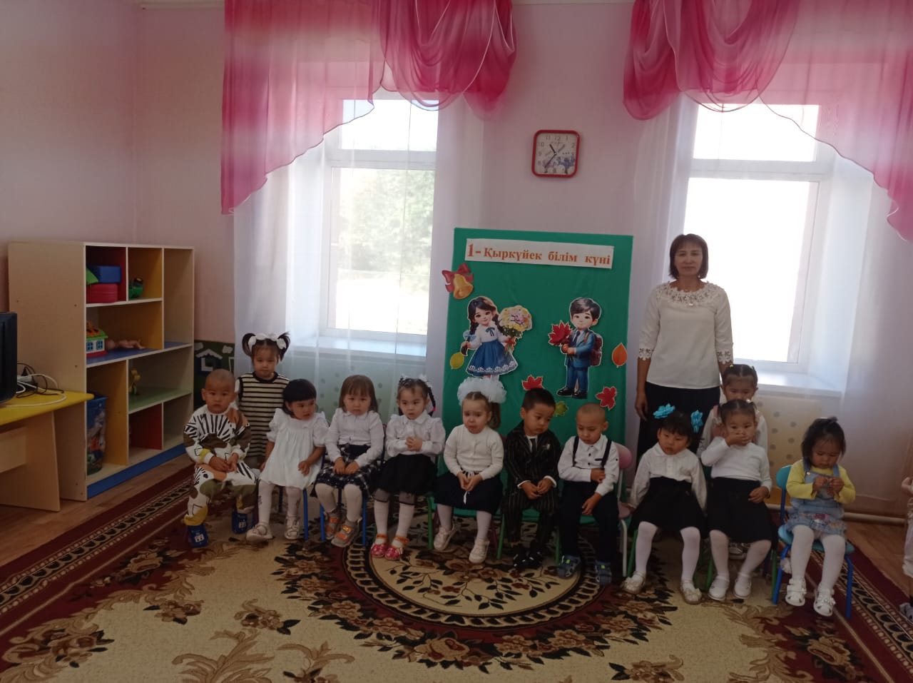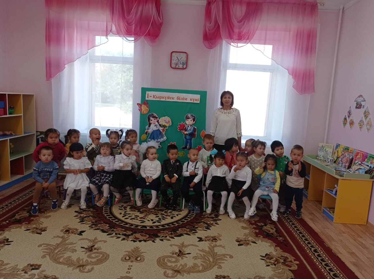 Тәрбиеші: Міне, балалар, осы күннен бастап бізде күнделікті іс-әрекетіміз, қызықты да көп нәрсеге үйренетін күндеріміз басталды.