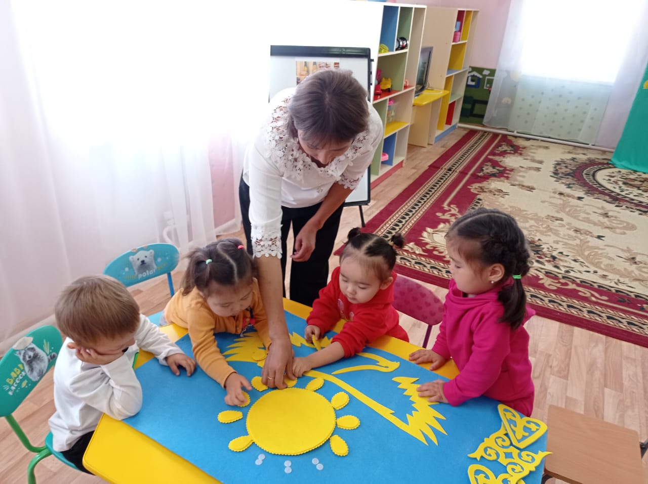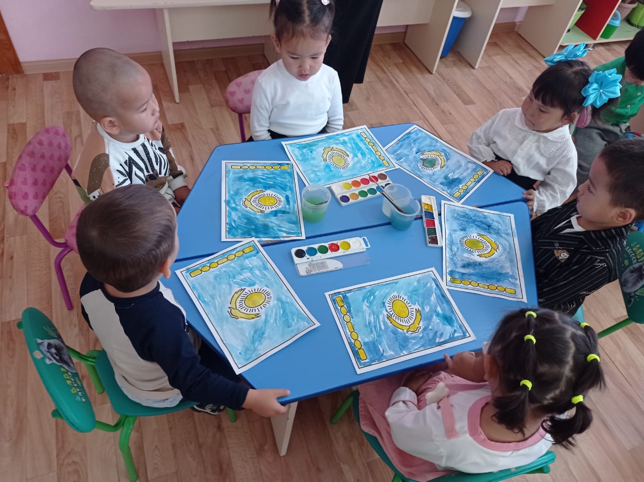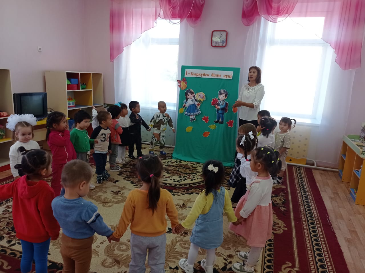 Тәрбиеші: Міне, балалар, осы күннен бастап бізде күнделікті іс-әрекетіміз, қызықты да көп нәрсеге үйренетін күндеріміз басталды.