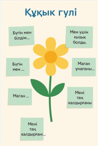 4. Қорытынды және Рефлексия (5 минут)Рефлексия әдісі: «Құқық гүлі»– «Құқық гүлі» суретін көрсетеді |