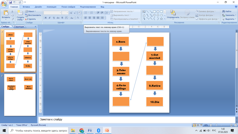 Introduction In the slide, the teacher demonstrates picture, and students are required to guess the topic of the lesson. Teacher says the learning objectives and lesson objectives What do you see? Teacher recorder the audio from youtube Group work Task 2. Method “Lifeline” Teacher hand out the words to put in correct place in the lifeline 1.Born 2.Go to school 3.Take exams 4.Go to college 5.Graduate from college 6.Start a job 7.Get married 8.Have children 9.Retire 10.Die Pair work Task 3. Method “Matching” The teacher shows the sentences in the platform