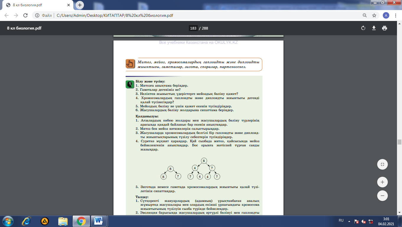 8.2.2.1 тірі ағзалардың тіршілік әрекетіндегі митоз бен мейоздың маңызын түсіндіру
