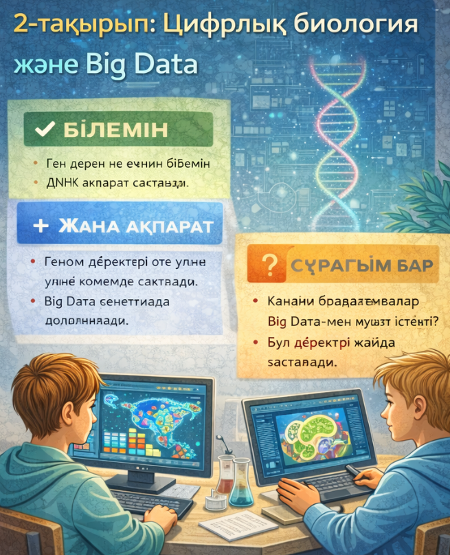 Биологиялық білім қазіргі кезде тек теориялық ұғымдармен шектелмейді, ол нақты деректерге, цифрлық талдау мен визуализацияға сүйенеді. Оқушылардың осындай бағыттағы дағдыларды меңгеруі болашақтағы ғылыми, медициналық және инженерлік мамандықтарға кәсіби бағдар берудің маңызды тетігі болып табылады.