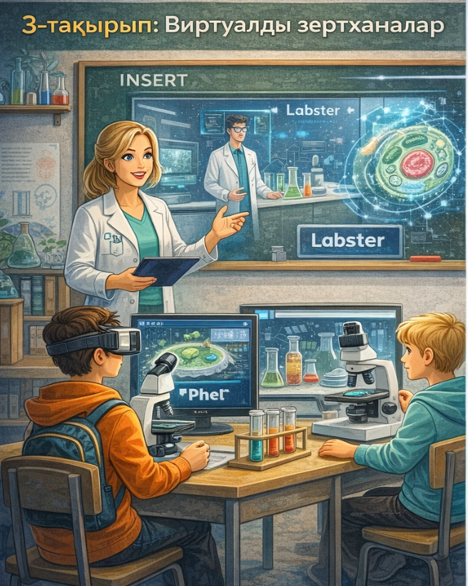 Оқушыларды биологиялық зерттеулерде қолданылатын заманауи цифрлық құралдармен таныстыру (виртуалды зертханалар, биосимуляторлар, биоинформатика Ресурсы).