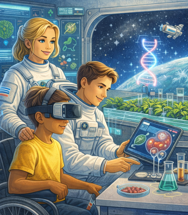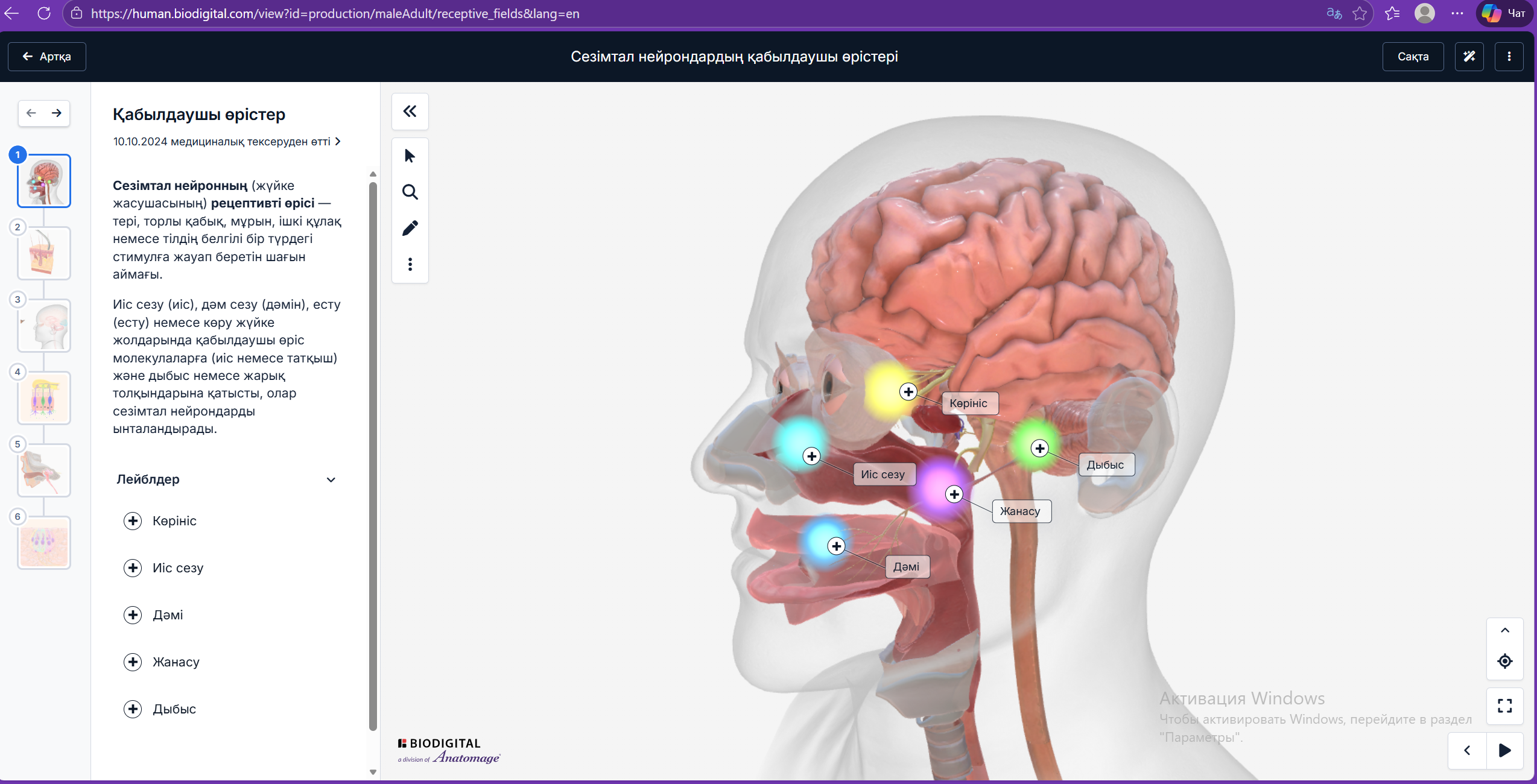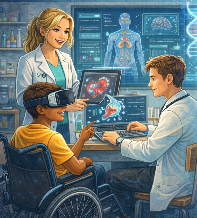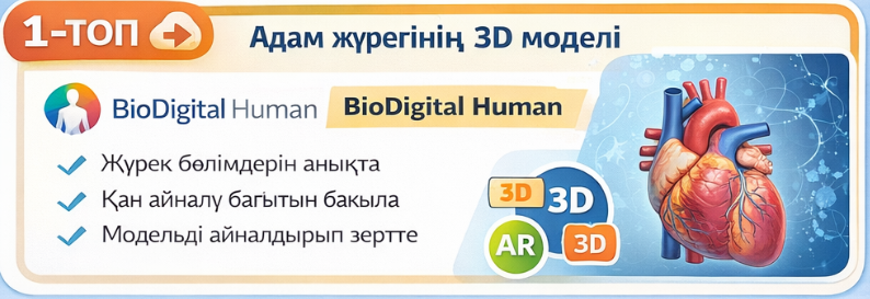 AR/VR технологиялары арқылы адамның анатомиялық құрылымын және биологиялық процестерді кеңістікте көру мүмкіндігі.