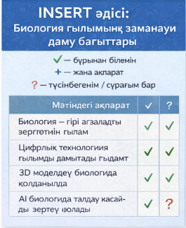 Биологияны оқытуда инновациялық тәсілдерді енгізу және оқушылардың XXI ғасыр дағдыларын дамыту (сыни ойлау, коммуникация, шығармашылық, ынтымақтастық).