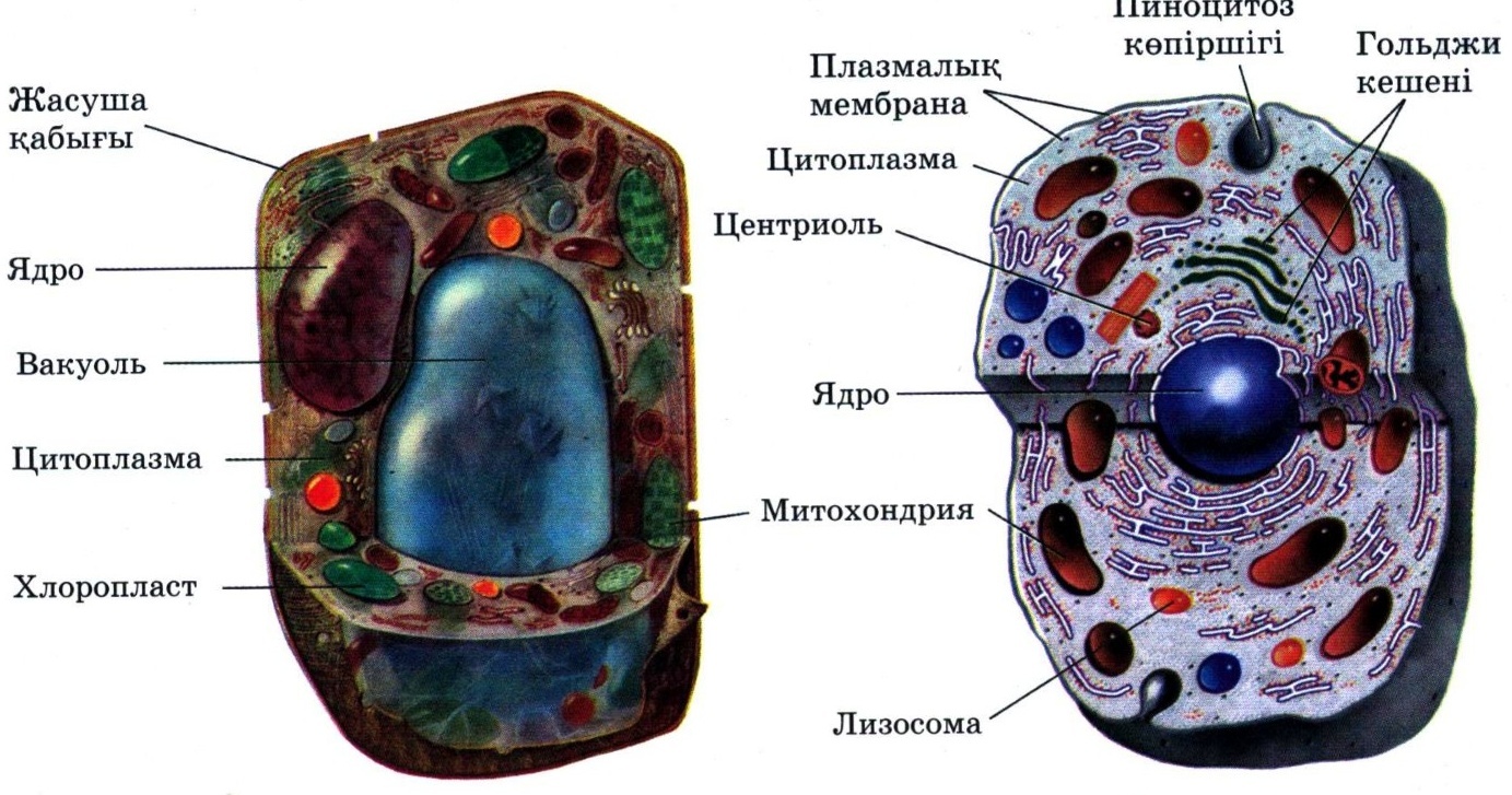 A-өсімдік жасушасы B-жануар жасушасы 2 балл |