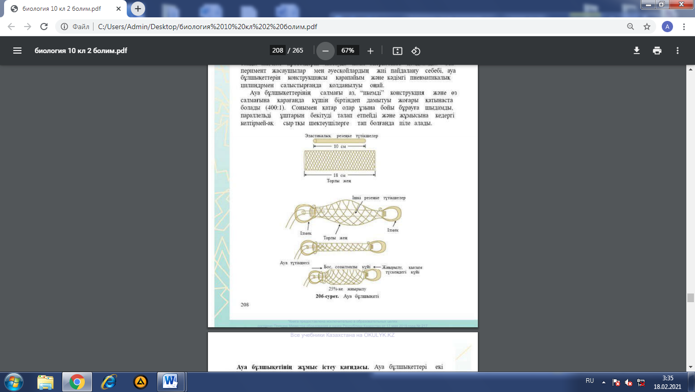 Жеке жұмыстар беріледі. ҚБ тапсырмасын жеке оқушыларға ұсынады 3. Ауа бұлшықетінің жұмыс жасау қағидасы қалай құрылған?