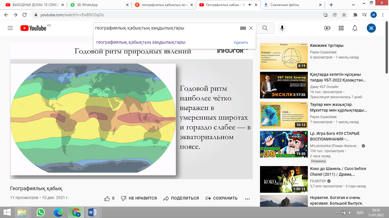 Жалпы географиялық заңдылықтарға сәйкес құбылыстар